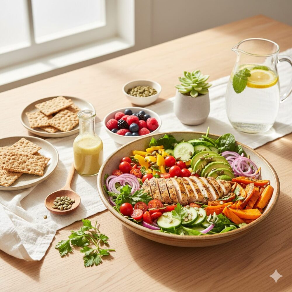 For instance, her routine included a “make-ahead volume salad.” She would chop a large batch of vegetables over the weekend and simply add a protein source of her choice each day. Why is this small effort so effective? Protein is the building block of muscles, essential for maintaining and improving basal metabolism. Additionally, the dietary fiber in vegetables helps suppress sharp rises in blood sugar and promotes a feeling of fullness. In other words, she was naturally building a body prone to weight loss without the stress of fighting hunger. Dieting is not an endurance contest; it’s a scientific process of intelligently nourishing your body and changing it from the inside out.