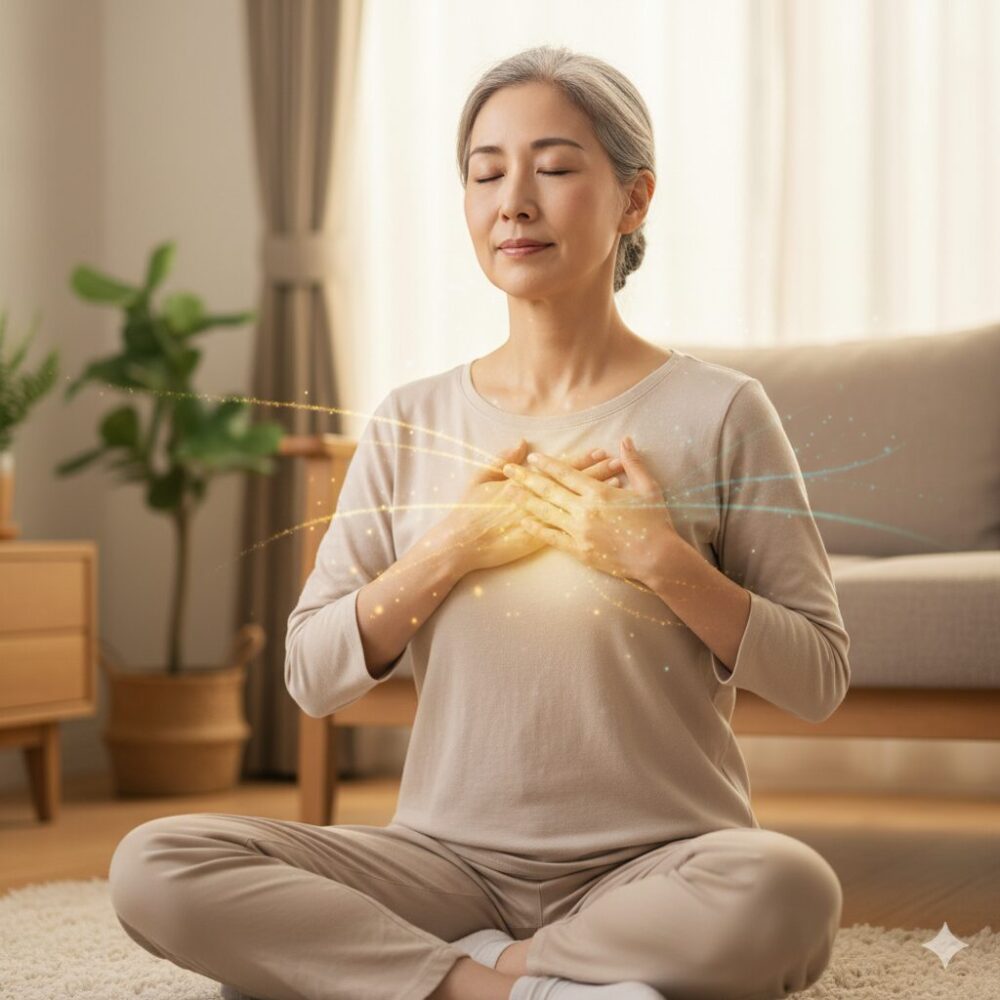 なぜ胸のセルフタッチが大切なのでしょうか。不安や悲しみ、余計な思いといった**「邪気」や「停滞した気」は、この胸のあたりに溜まりやすい**からです。東洋医学でいう「中間電」やヨガの「ハートチャクラ」と呼ばれるこの部分は、私たちが日々の感情を受け止めている場所でした。この感情のセンサーを自分で整えてあげることで、自分の気持ちを守るバリアを張ることもできるでしょう。