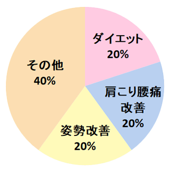 ダイエット、肩こり腰痛の改善、姿勢改善等、利用目的も様々。健康で美しく、自分らしく年齢を重ねたい方に選ばれているスタジオです。